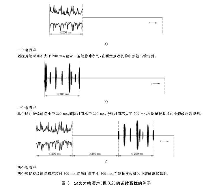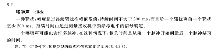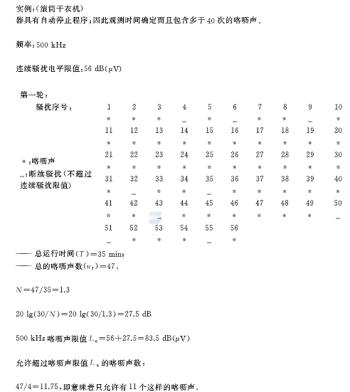 當(dāng)上述情況測(cè)試不合格時(shí),我們?cè)偃タ紤]是否所有的喀嚦聲持續(xù)時(shí)間和分布符合喀嚦聲的定義(GB4343.1見(jiàn)3.2),因?yàn)橹挥羞@種情況下才對(duì)斷續(xù)騷擾使用放寬的限值。
